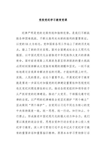 【七哥公文】2024年:党校党纪学习教育党课+更多免费公文+VX:QiGeGongWen2024