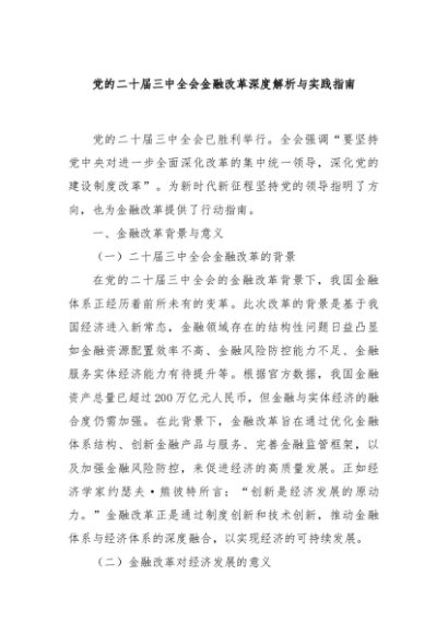 / 【七哥公文】2024年:党的二十届三中全会金融改革深度解析与实践指南+更多免费公文+VX:QiGeGongWen2024
