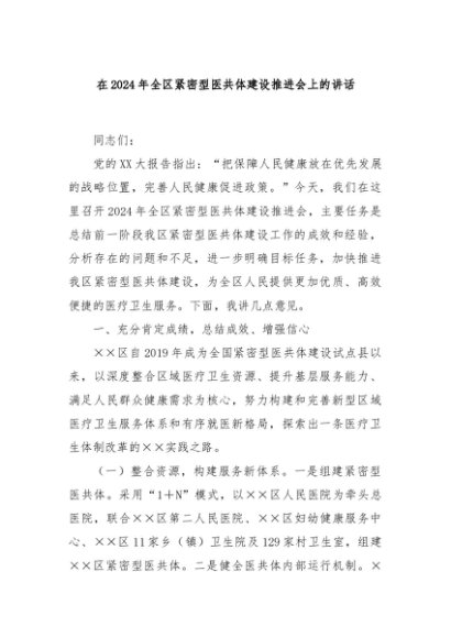 / 【七哥公文】2024年:在2024年全区紧密型医共体建设推进会上的讲话+更多免费公文+VX:QiGeGongWen2024