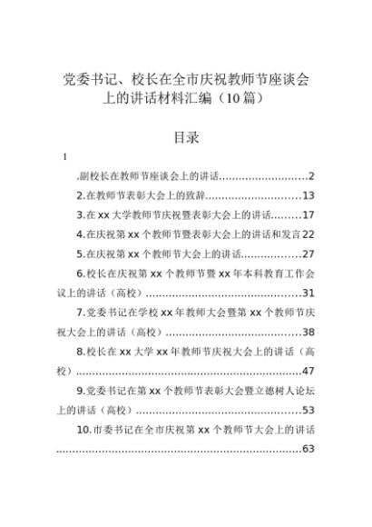 【七哥公文】2024年:党委书记、校长在全市庆祝教师节座谈会上的讲话材料汇编(10篇)+更多免费公文+VX:QiGeGongWen2024