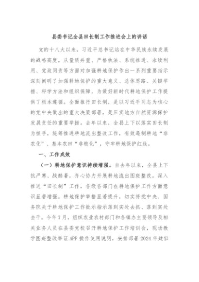 / 【七哥公文】2024年:县委书记全县田长制工作推进会上的讲话+更多免费公文+VX:QiGeGongWen2024