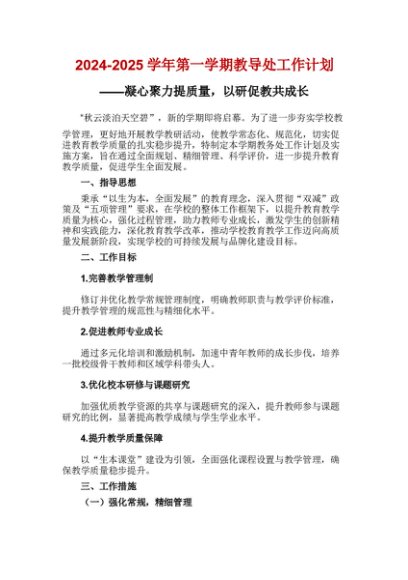 / 【七哥公文】2024年:2024-2025学年第一学期教导处工作计划+更多免费公文+VX:QiGeGongWen2024