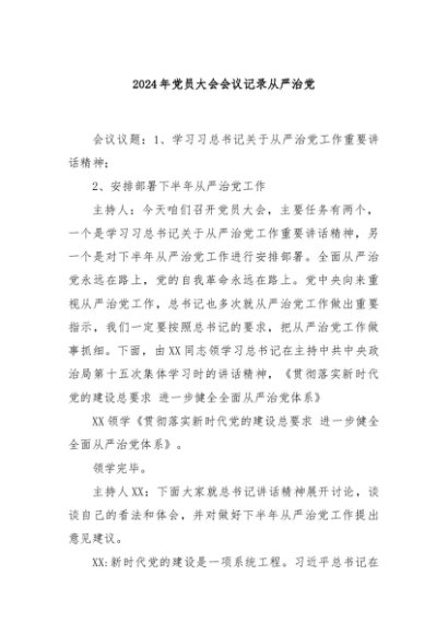 / 【七哥公文】2024年:2024年党员大会会议记录从严治党+更多免费公文+VX:QiGeGongWen2024