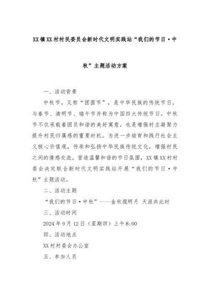 【七哥公文】2024年:XX镇XX村村民委员会新时代文明实践站“我们的节日·中秋”主题活动方案+更多免费公文+VX:QiGeGongWen2024