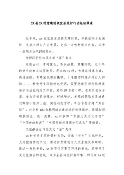 / 【七哥公文】2024年:XX县XX村党建引领宜居美村行动经验做法+更多免费公文+VX:QiGeGongWen2024