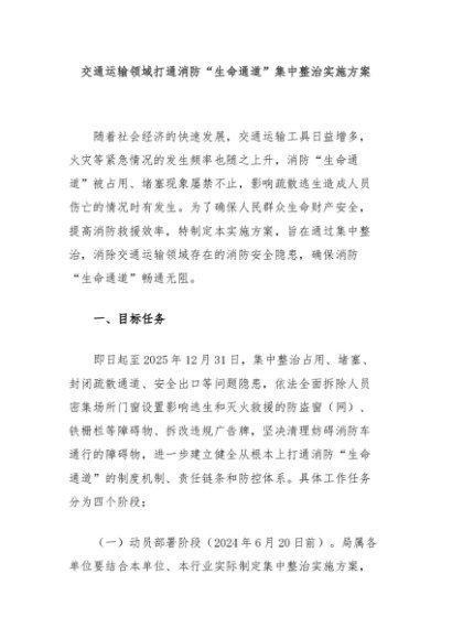/ 【七哥公文】2024年:交通运输领域打通消防“生命通道”集中整治实施方案+更多免费公文+VX:QiGeGongWen2024
