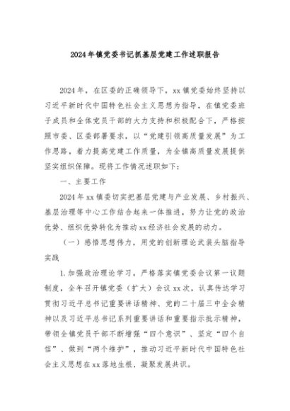/ 【七哥公文】2024年:2024年镇党委书记抓基层党建工作述职报告+更多免费公文+VX:QiGeGongWen2024