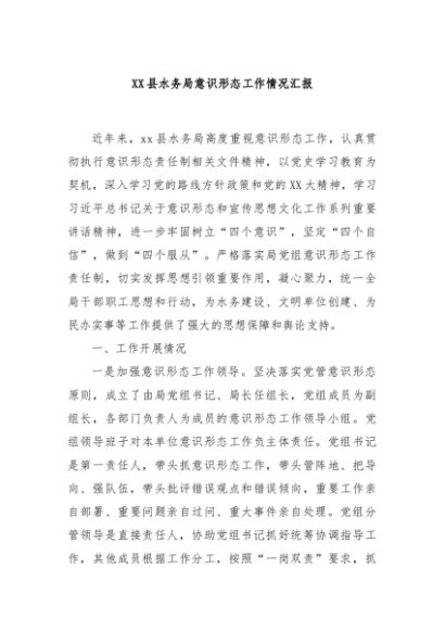 / 【七哥公文】2024年:XX县水务局意识形态工作情况汇报+更多免费公文+VX:QiGeGongWen2024