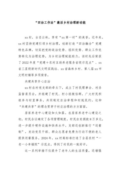 / 【七哥公文】2024年:“四治工作法”激活乡村治理新动能+更多免费公文+VX:QiGeGongWen2024