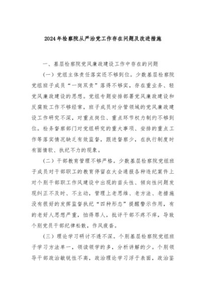 / 【七哥公文】2024年:2024年检察院从严治党工作存在问题及改进措施+更多免费公文+VX:QiGeGongWen2024
