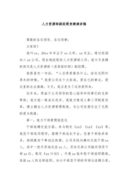 / 【七哥公文】2024年:人力资源部副经理竞聘演讲稿+更多免费公文+VX:QiGeGongWen2024