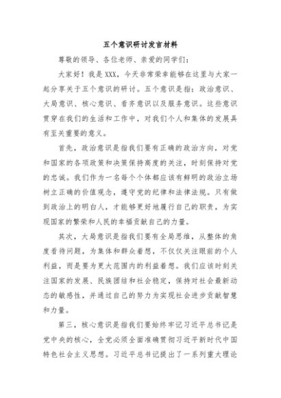 / 【七哥公文】2024年:五个意识研讨发言材料+更多免费公文+VX:QiGeGongWen2024