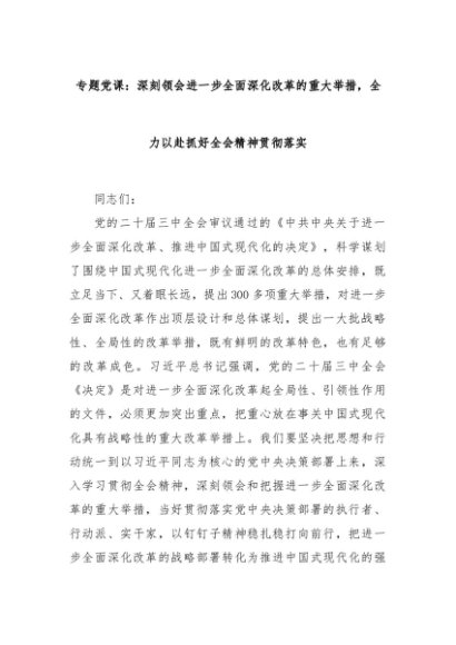 【七哥公文】2024年:专题党课:深刻领会进一步全面深化改革的重大举措,全力以赴抓好全会精神贯彻落实+更多免费公文+VX:QiGeGongWen2024
