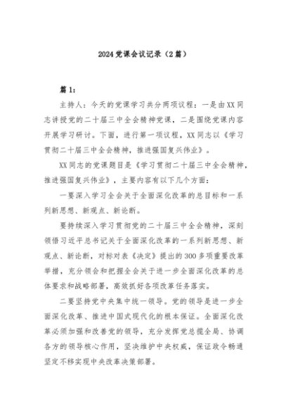 / 【七哥公文】2024年:(2篇)2024党课会议记录+更多免费公文+VX:QiGeGongWen2024