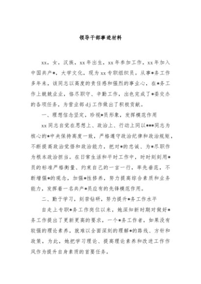 / 【七哥公文】2024年:领导干部事迹材料+更多免费公文+VX:QiGeGongWen2024