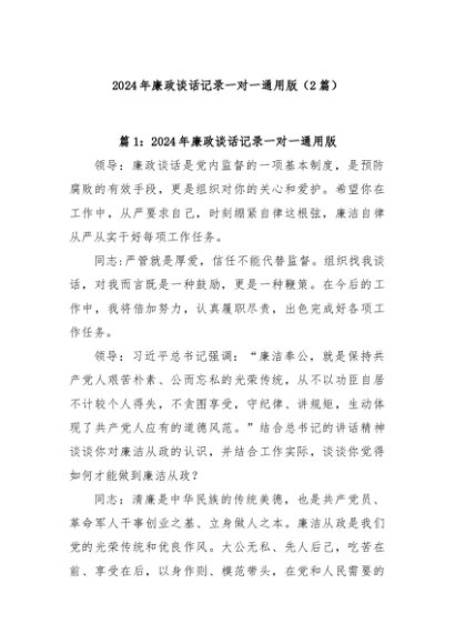/ 【七哥公文】2024年:(2篇)2024年廉政谈话记录一对一通用版+更多免费公文+VX:QiGeGongWen2024