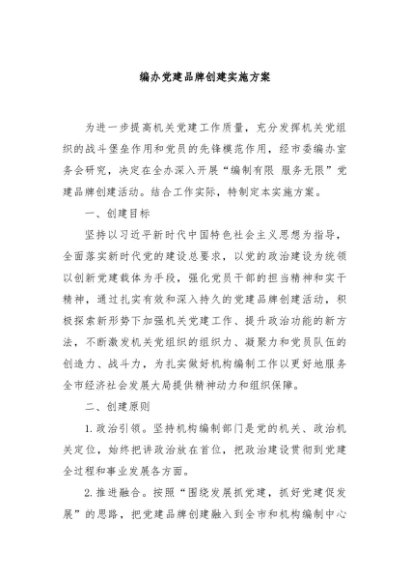 / 【七哥公文】2024年:编办党建品牌创建实施方案+更多免费公文+VX:QiGeGongWen2024