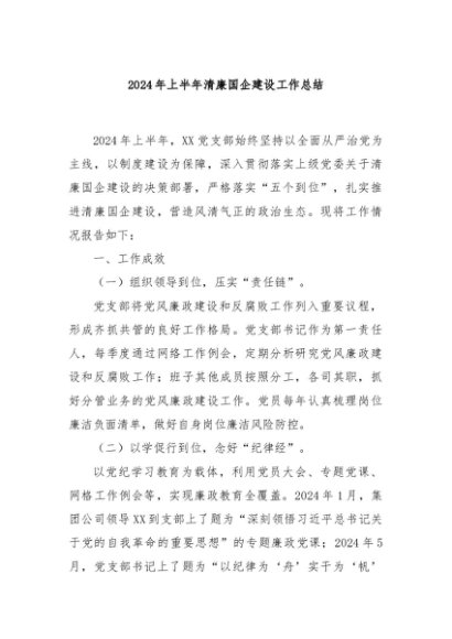 / 【七哥公文】2024年:2024年上半年清廉国企建设工作总结+更多免费公文+VX:QiGeGongWen2024