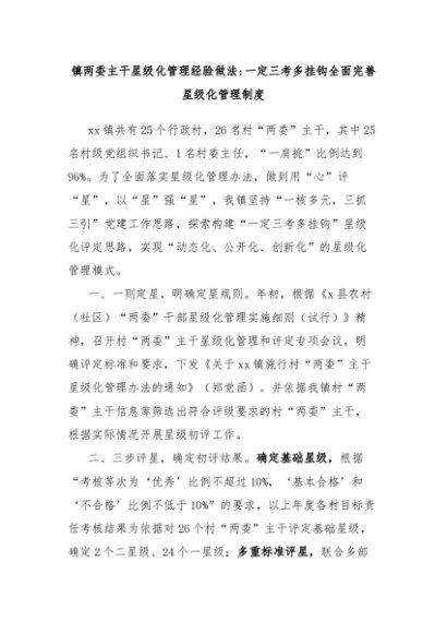 【七哥公文】2024年:镇两委主干星级化管理经验做法一定三考多挂钩全面完善星级化管理制度+更多免费公文+VX:QiGeGongWen2024