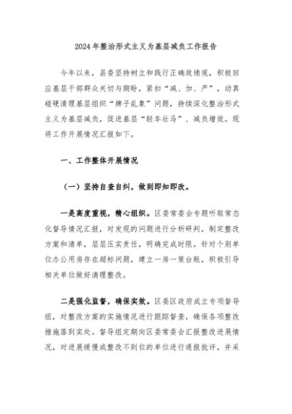 / 【七哥公文】2024年:2024年整治形式主义为基层减负工作报告+更多免费公文+VX:QiGeGongWen2024