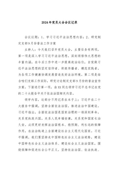 / 【七哥公文】2024年:2024年党员大会会议记录+更多免费公文+VX:QiGeGongWen2024