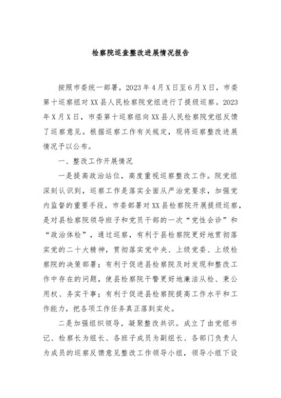 【七哥公文】2024年:检察院巡查整改进展情况报告+更多免费公文+VX:QiGeGongWen2024