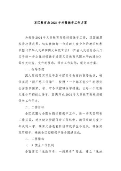 / 【七哥公文】2024年:某区教育局2024年控辍保学工作方案+更多免费公文+VX:QiGeGongWen2024