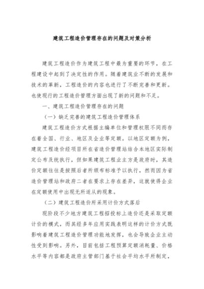 / 【七哥公文】2024年:建筑工程造价管理存在的问题及对策分析+更多免费公文+VX:QiGeGongWen2024