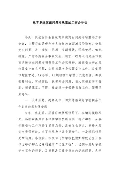 / 【七哥公文】2024年:教育系统突出问题专线整治工作会讲话+更多免费公文+VX:QiGeGongWen2024