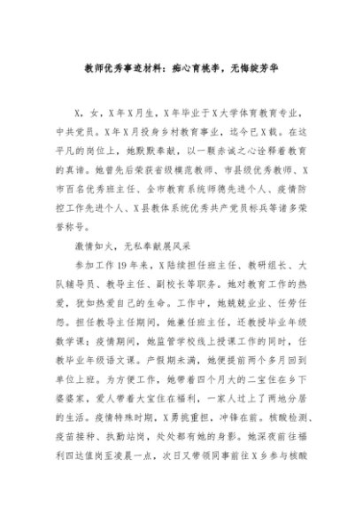 / 【七哥公文】2024年:教师优秀事迹材料:痴心育桃李,无悔绽芳华+更多免费公文+VX:QiGeGongWen2024