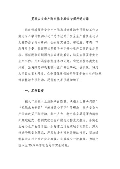 / 【七哥公文】2024年:夏季安全生产隐患排查整治专项行动方案+更多免费公文+VX:QiGeGongWen2024