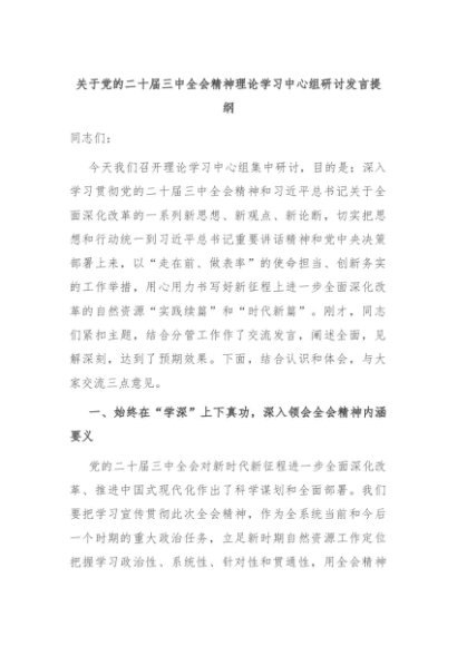【七哥公文】2024年:关于党的二十届三中全会精神理论学习中心组研讨发言提纲+更多免费公文+VX:QiGeGongWen2024