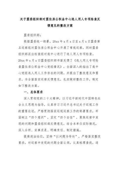 【七哥公文】2024年:关于盟委组织部对盟住房公积金中心选人用人专项检查反馈意见的整改方案+更多免费公文+VX:QiGeGongWen2024