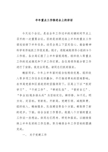 / 【七哥公文】2024年:半年重点工作推进会上的讲话+更多免费公文+VX:QiGeGongWen2024