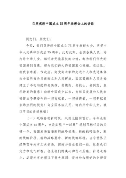 / 【七哥公文】2024年:在庆祝新中国成立75周年表彰会上的讲话+更多免费公文+VX:QiGeGongWen2024