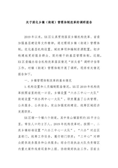 / 【七哥公文】2024年:关于深化乡镇(街道)管理体制改革的调研报告+更多免费公文+VX:QiGeGongWen2024