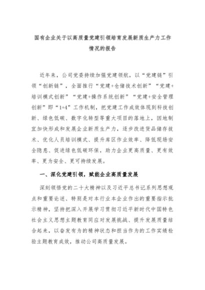 【七哥公文】2024年:国有企业关于以高质量党建引领培育发展新质生产力工作情况的报告+更多免费公文+VX:QiGeGongWen2024