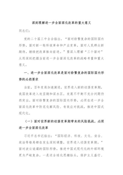 / 【七哥公文】2024年:深刻理解进一步全面深化改革的重大意义+更多免费公文+VX:QiGeGongWen2024