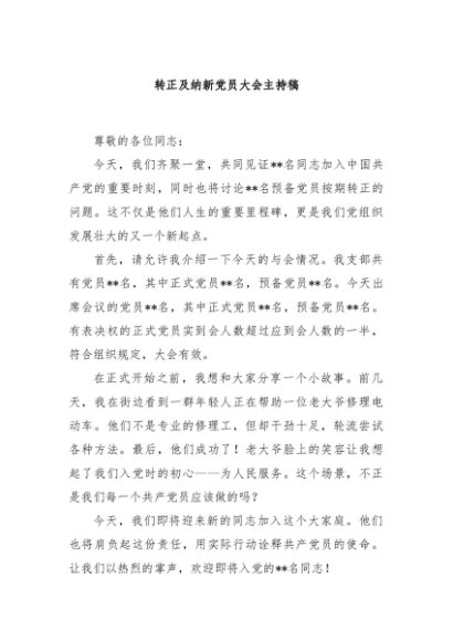 / 【七哥公文】2024年:转正及纳新党员大会主持稿+更多免费公文+VX:QiGeGongWen2024
