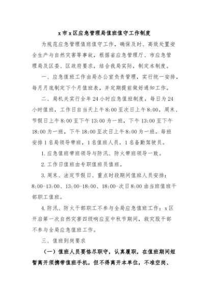 / 【七哥公文】2024年:x市x区应急管理局值班值守工作制度+更多免费公文+VX:QiGeGongWen2024