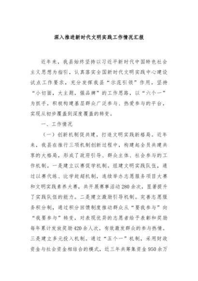 / 【七哥公文】2024年:深入推进新时代文明实践工作情况汇报+更多免费公文+VX:QiGeGongWen2024