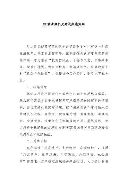 / 【七哥公文】2024年:XX镇清廉机关建设实施方案+更多免费公文+VX:QiGeGongWen2024
