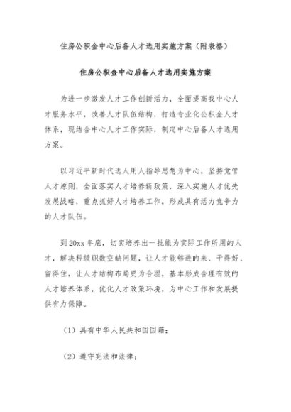/ 【七哥公文】2024年:住房公积金中心后备人才选用实施方案(附表格)+更多免费公文+VX:QiGeGongWen2024
