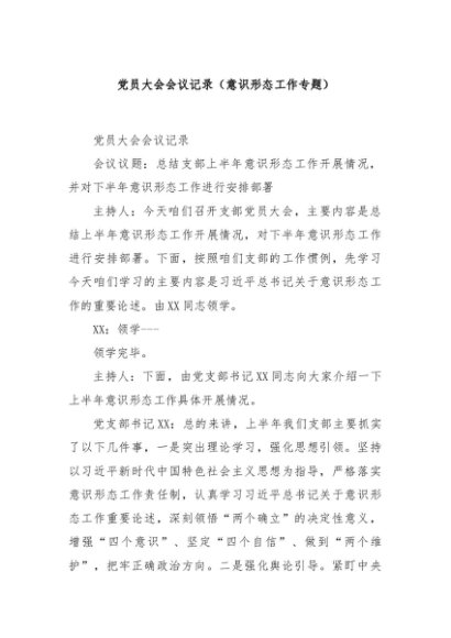 / 【七哥公文】2024年:党员大会会议记录(意识形态工作专题)+更多免费公文+VX:QiGeGongWen2024