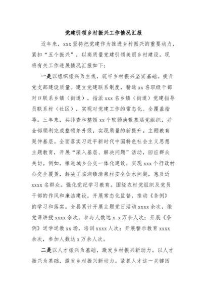 / 【七哥公文】2024年:党建引领乡村振兴工作情况汇报+更多免费公文+VX:QiGeGongWen2024