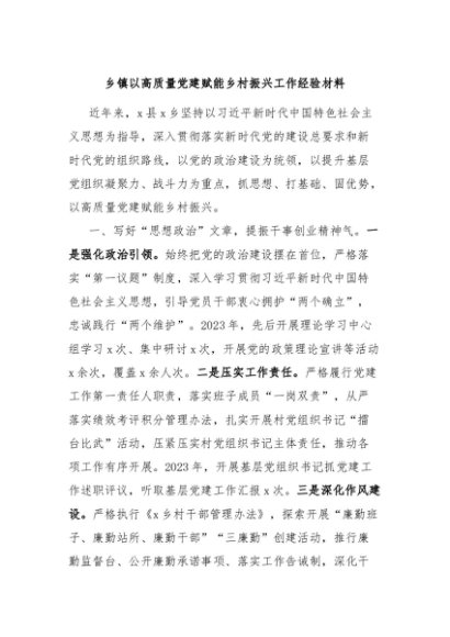 / 【七哥公文】2024年:乡镇以高质量党建赋能乡村振兴工作经验材料+更多免费公文+VX:QiGeGongWen2024