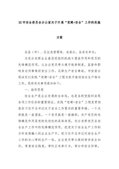 【七哥公文】2024年:XX市安全委员会办公室关于开展“党建+安全”工作的实施方案+更多免费公文+VX:QiGeGongWen2024