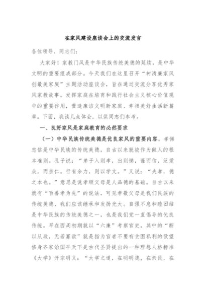 / 【七哥公文】2024年:在家风建设座谈会上的交流发言+更多免费公文+VX:QiGeGongWen2024