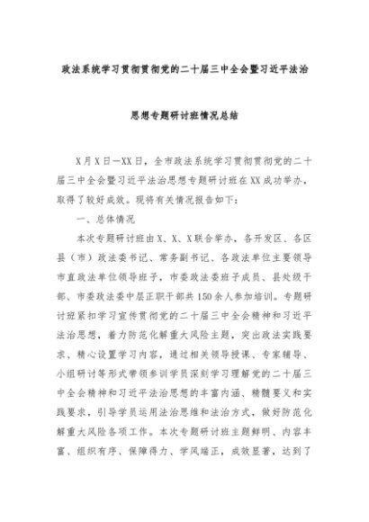 【七哥公文】2024年:政法系统学习贯彻贯彻党的二十届三中全会暨习近平法治思想专题研讨班情况总结+更多免费公文+VX:QiGeGongWen2024