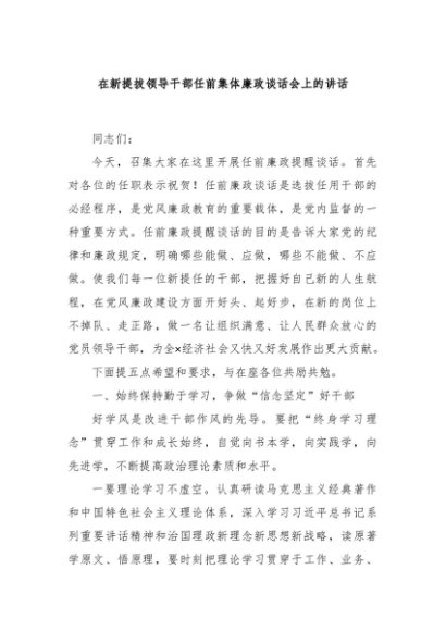 / 【七哥公文】2024年:在新提拔领导干部任前集体廉政谈话会上的讲话+更多免费公文+VX:QiGeGongWen2024